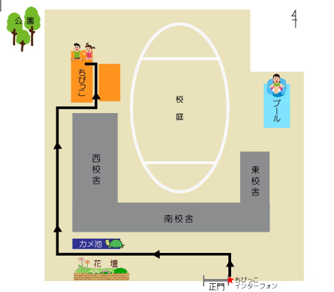 | お迎え等でちびっこクラブへお越しの際は、正門に設置されている「ちびっこクラブインターフォン」を押して、応答した職員にお子様の学年とお名前フルネームをお伝えください。 電子錠を開錠しますので、その扉(正門が開いているときは正門でも可)から入校してください。 電子開錠された扉は自動で閉まります。 学校の内側から外に出る時は、正門左手にある「ちびっこインターフォン」を押してください。 |